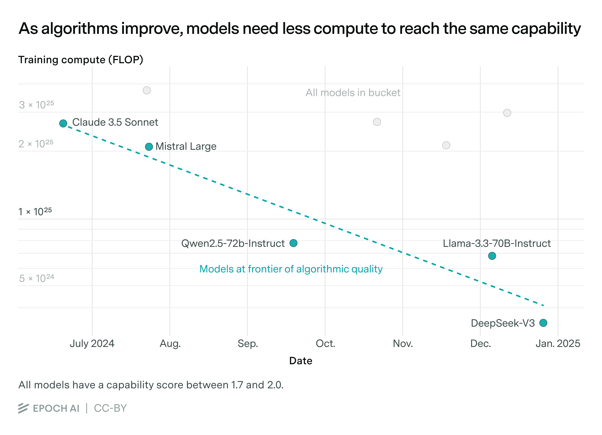 And we can use this trend to study software improvements. With better software, we can train models with less compute while still reaching the same capability, increasing “software efficiency”.