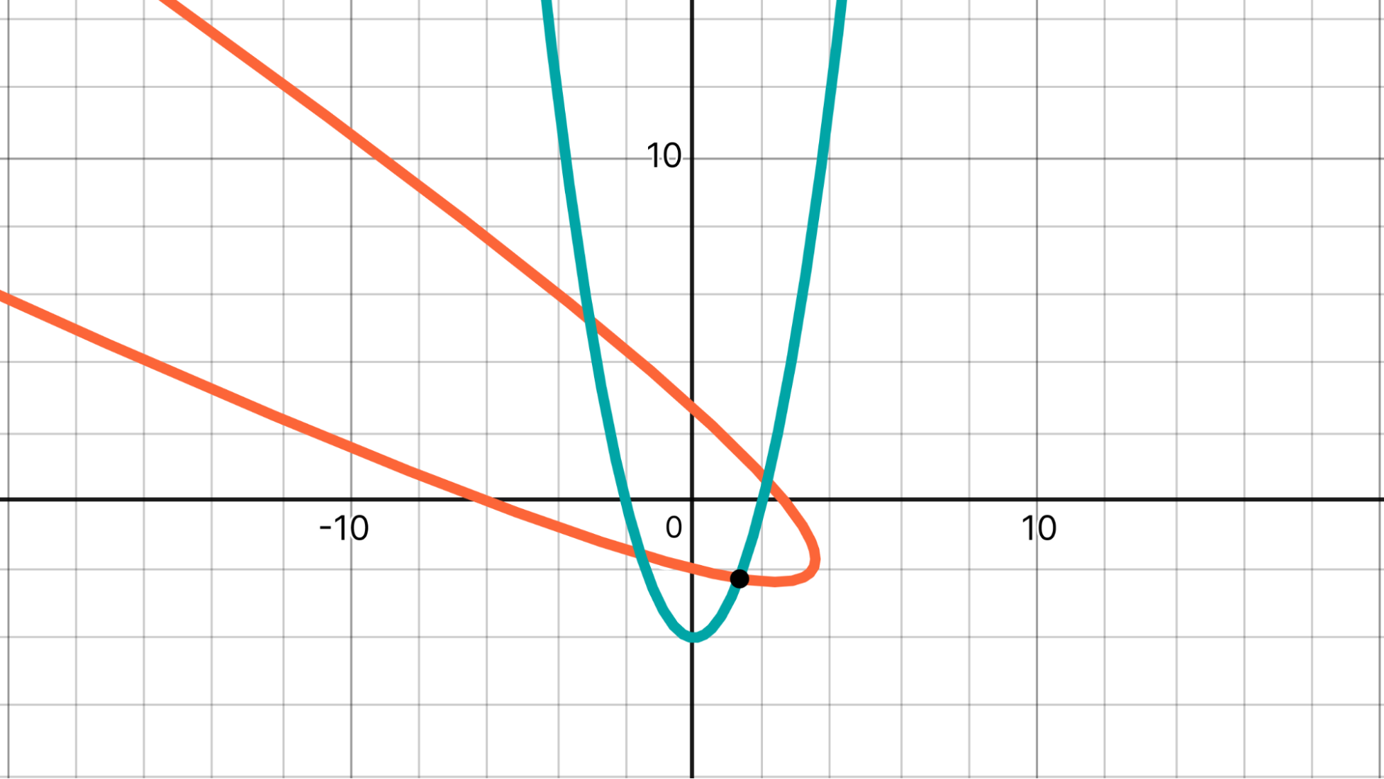 The chart below shows the two parabolas and the point of interest.