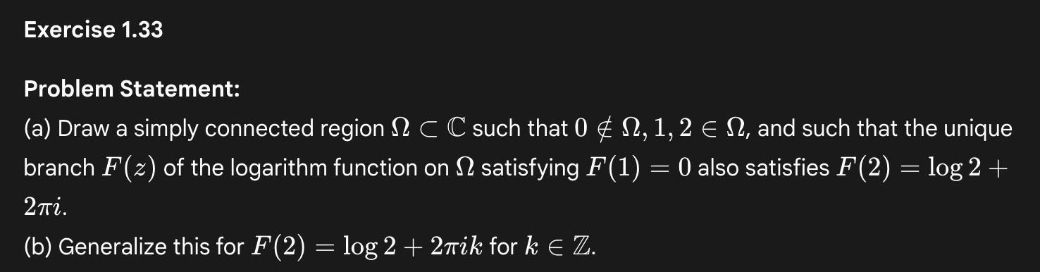 In one case, he asked it to find errors in a graduate-level textbook he authored. Many of the errors Deep Think claimed to have found were spurious, apparently due to incorrect extraction of content from the PDF. However, some were true hits: it noticed inconsistent notation across several pages of one section and, most impressively, correctly caught a logical error in the commentary on a particular proof. He also asked the model to solve a couple of the exercises in the textbook, which it did successfully. He was particularly impressed with its solution to one problem which required drawing a diagram based on a conceptual understanding of the geometry of complex logarithms. The exercise and one of Deep Think’s diagrams are shown below.