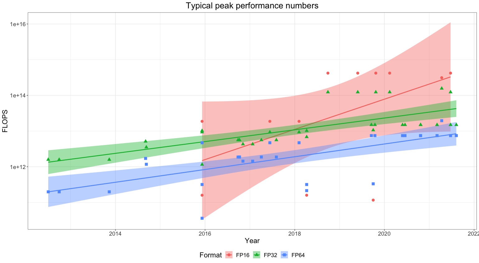 When looking up specifications sheets of computation hardware, you usually find the computational performance divided into different brackets based on the number representation, such as FP32, FP32, FP16, bfloat16, int16, or int8. This leads to the question: which performance metric should you pick?