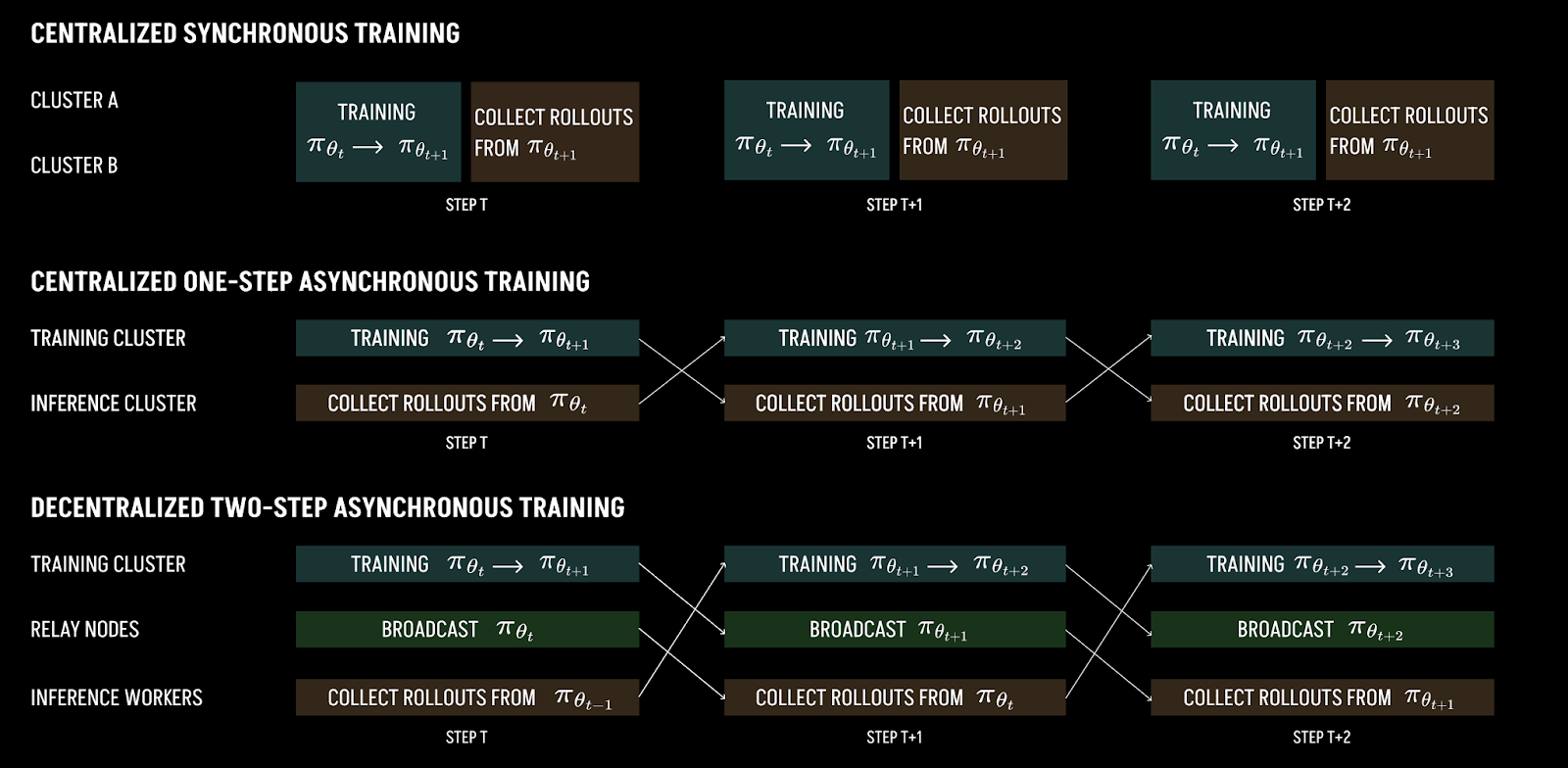 The largest decentralized RL training run to date is INTELLECT-2 by Prime Intellect, which coordinated the output of over 800+ nodes to generate traces and post train a QwQ-32B base model using asynchronous RL.