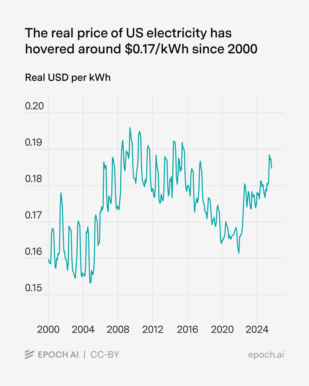 Indeed, we see that real energy prices have been basically stagnant over the last twenty years.1