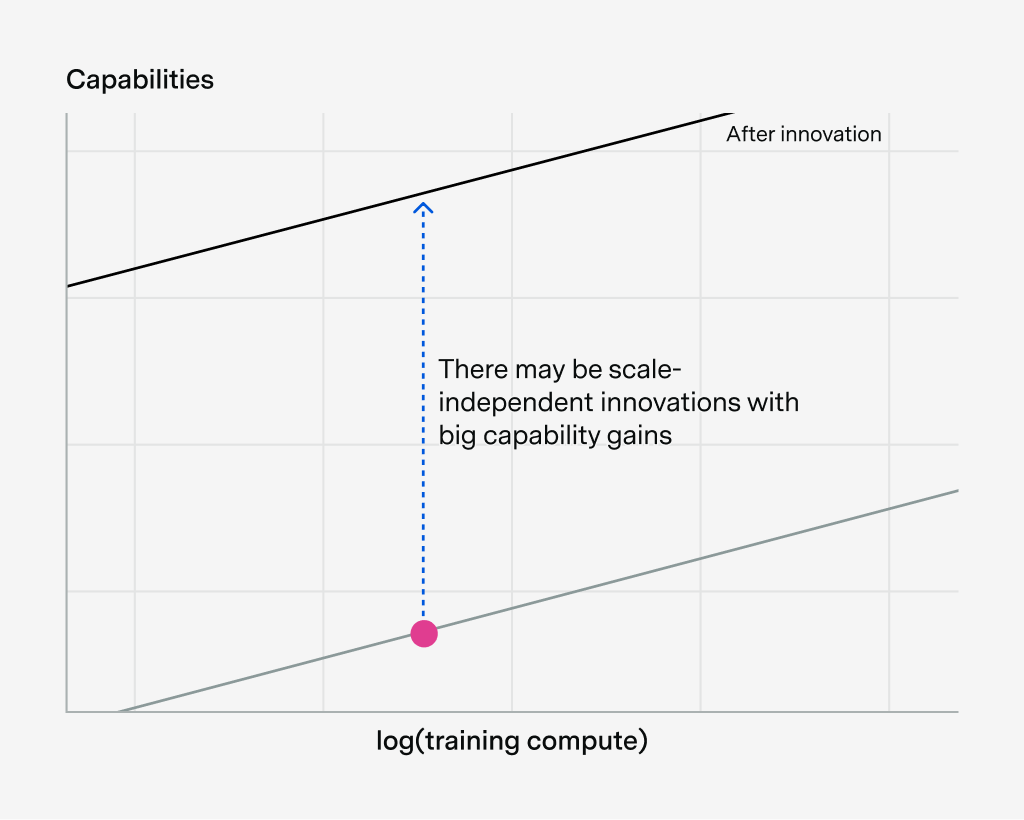 Alternatively, you could in principle find a ton of scale-independent innovations with big capability gains: