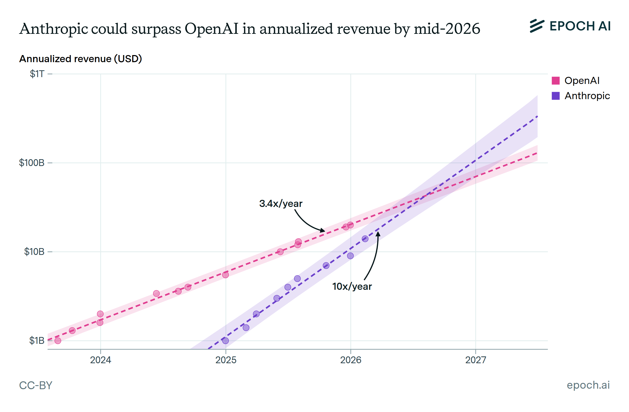 Anthropic could surpass OpenAI in annualized revenue by mid-2026