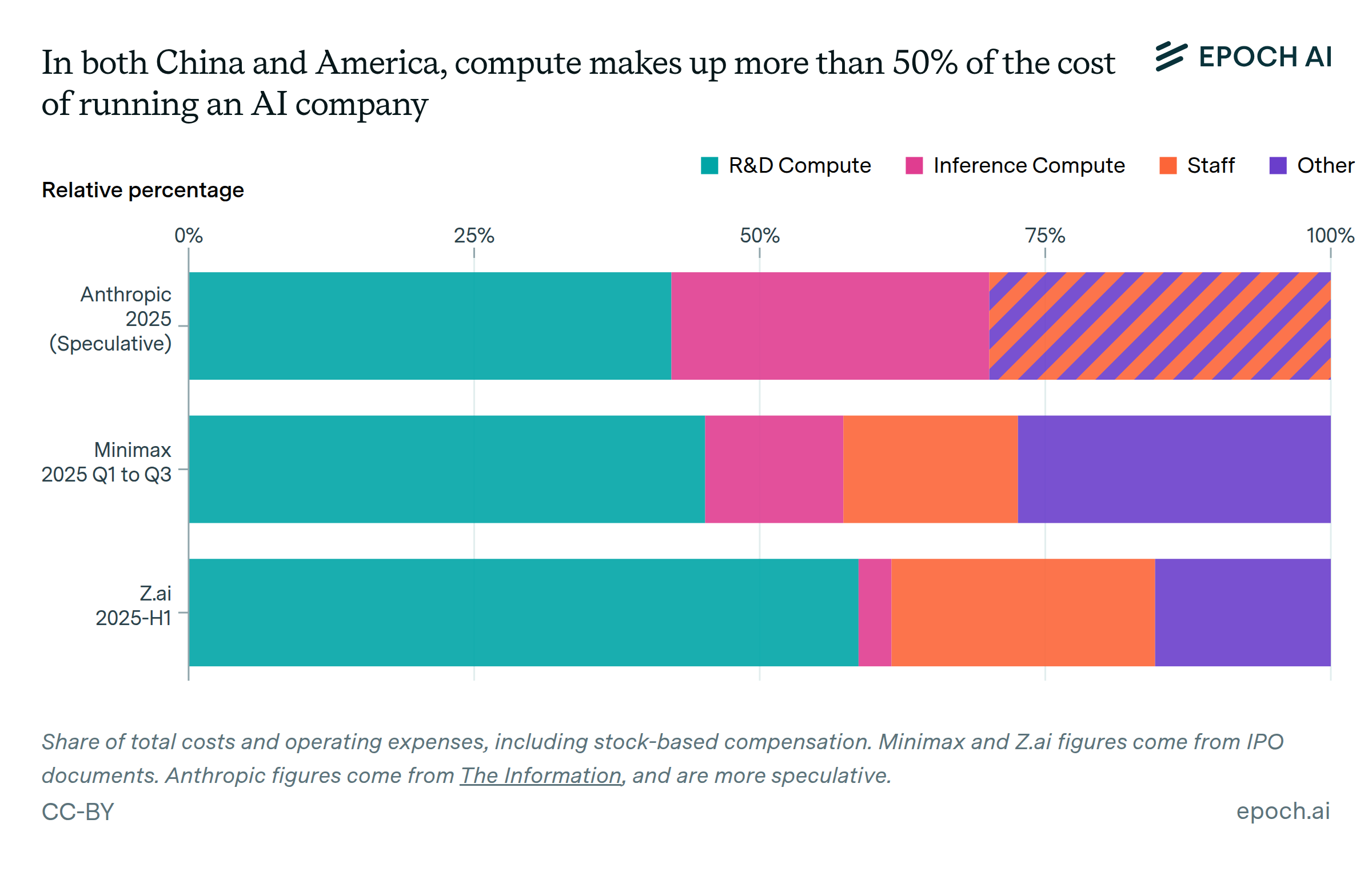 In both China and the US, compute makes up more than 50% of the cost of running an AI company